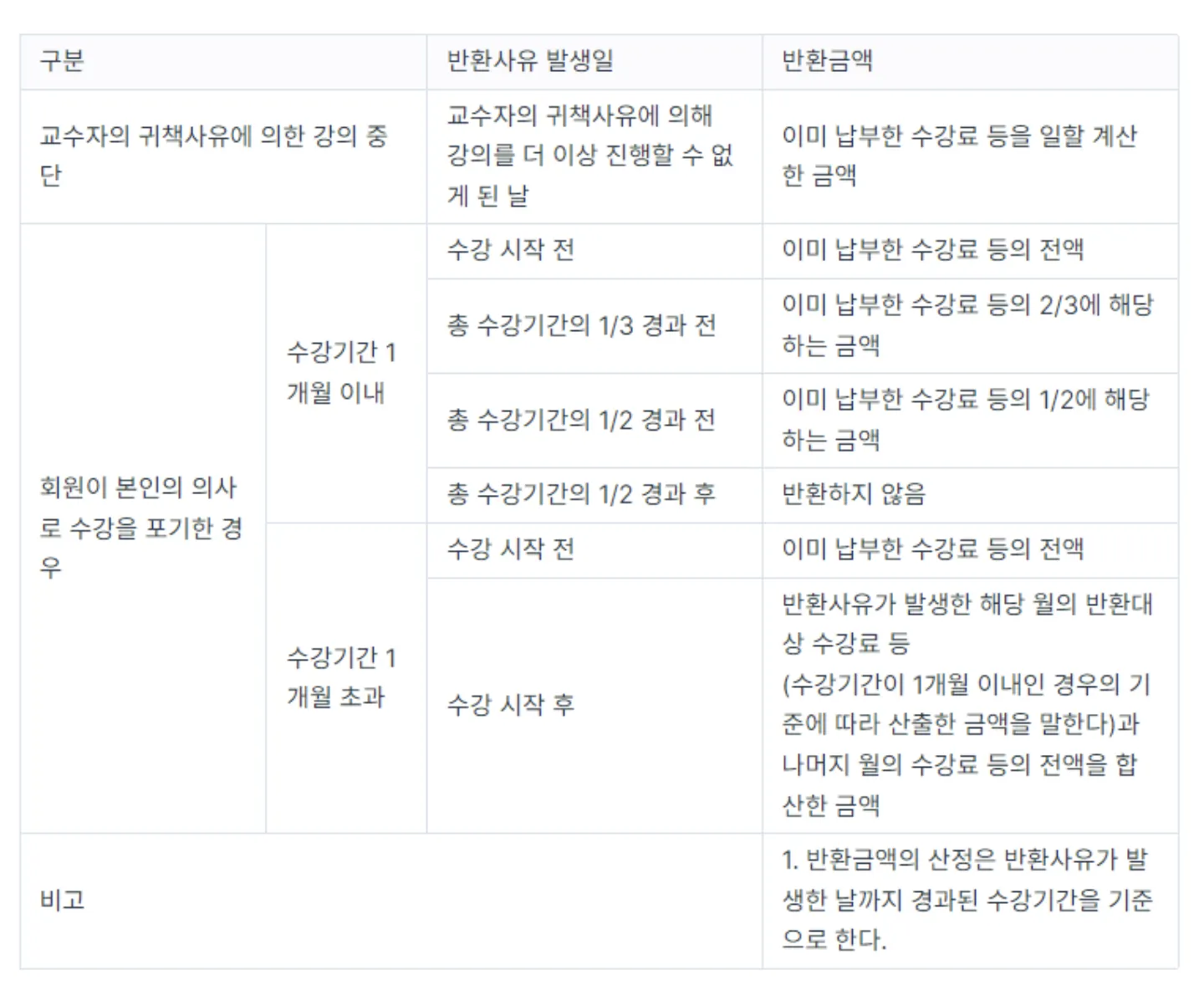 환불자는 코스 시작 전뿐만 아니라 코스 시작 중에도 발생할 수 있습니다.