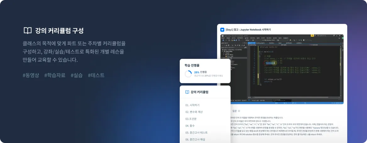 클래스룸은 프로그래머스 스쿨과 프로그래머스 캠퍼스의 코딩 교육이 이루어지는 온라인 학습 공간입니다.